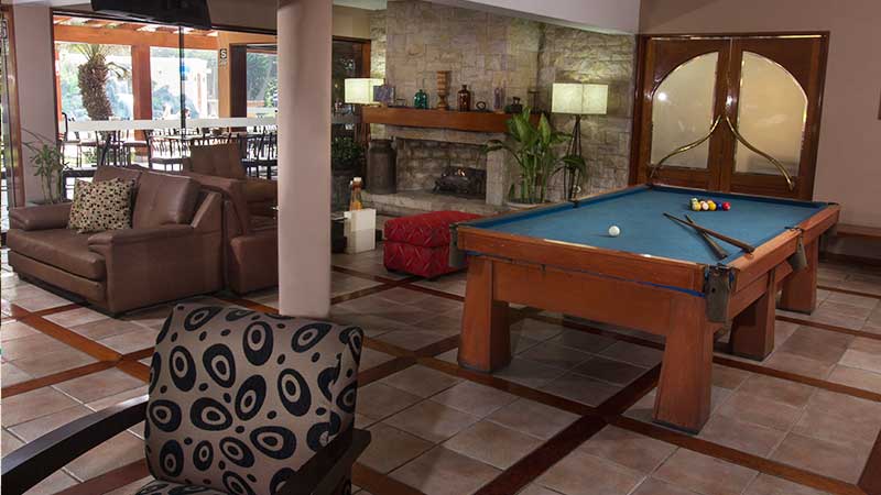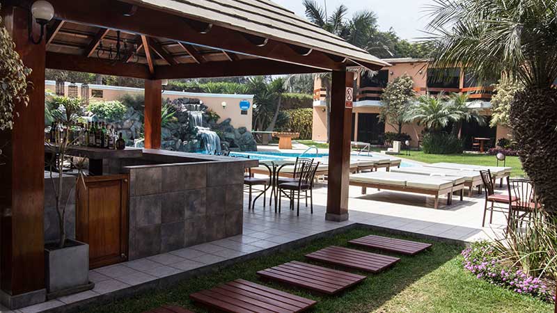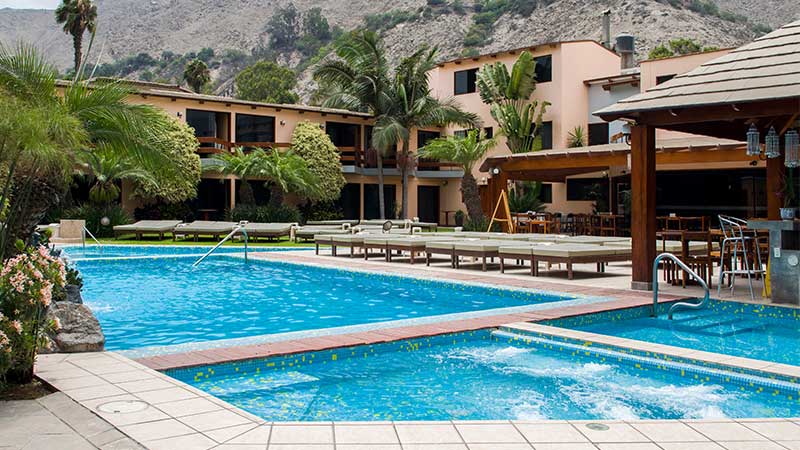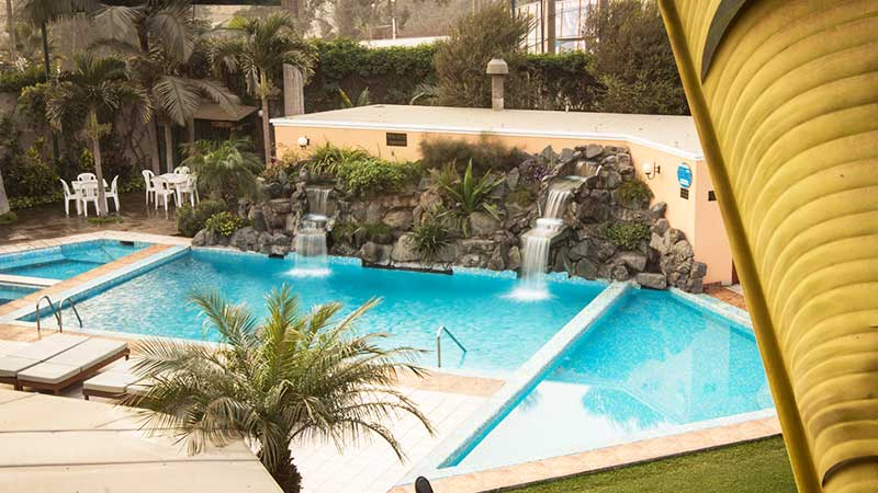 Asimismo, ponemos a su disposición servicio de bar, sauna seco, jacuzzi con agua caliente, barra dentro de la piscina, piscinas para niños y adultos, colchonetas, juegos para niños, fulbito de mano, sapito, billas, estacionamiento privado y servicio de Internet en todo el hotel. Contamos con acceso para sillas de ruedas.